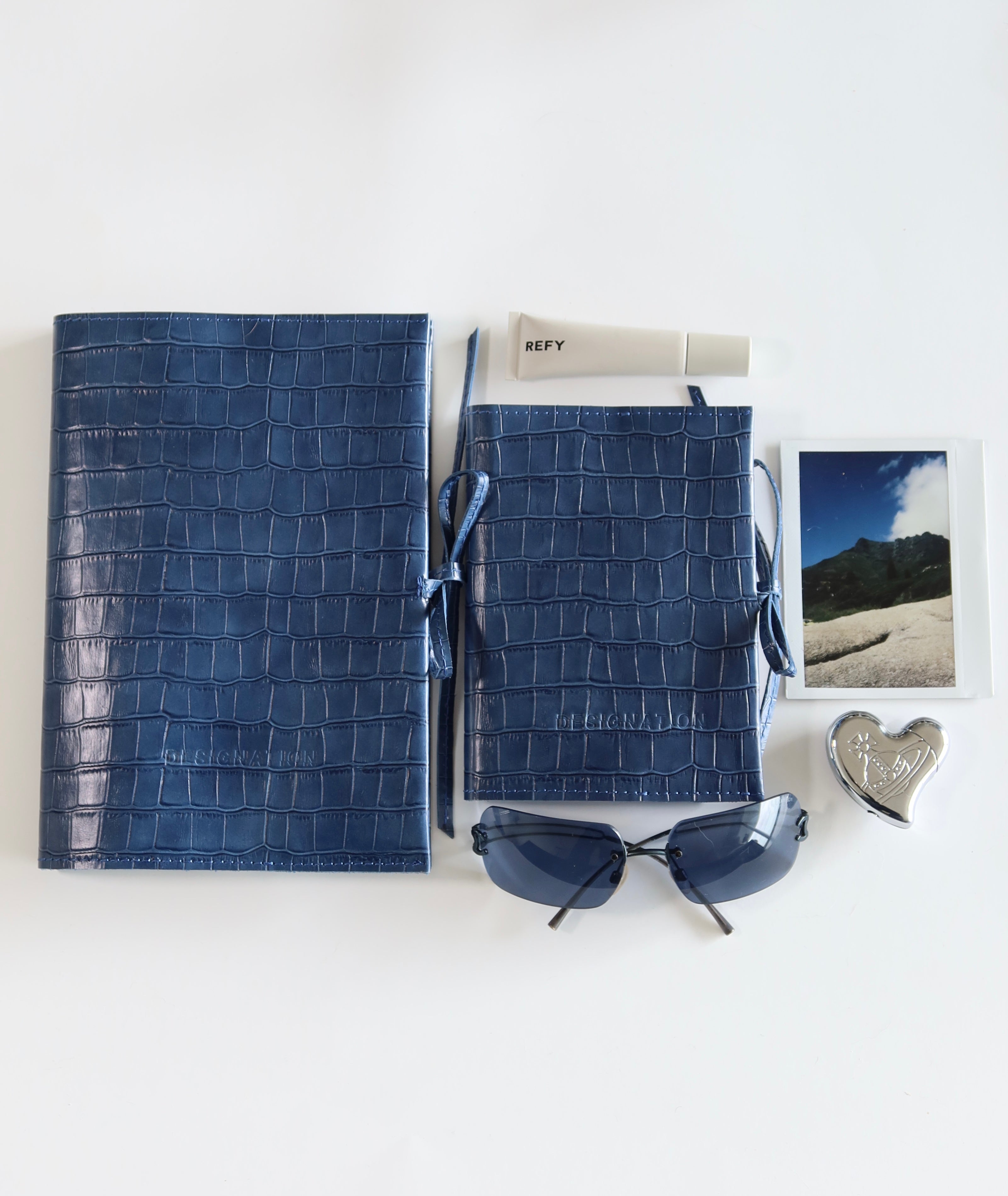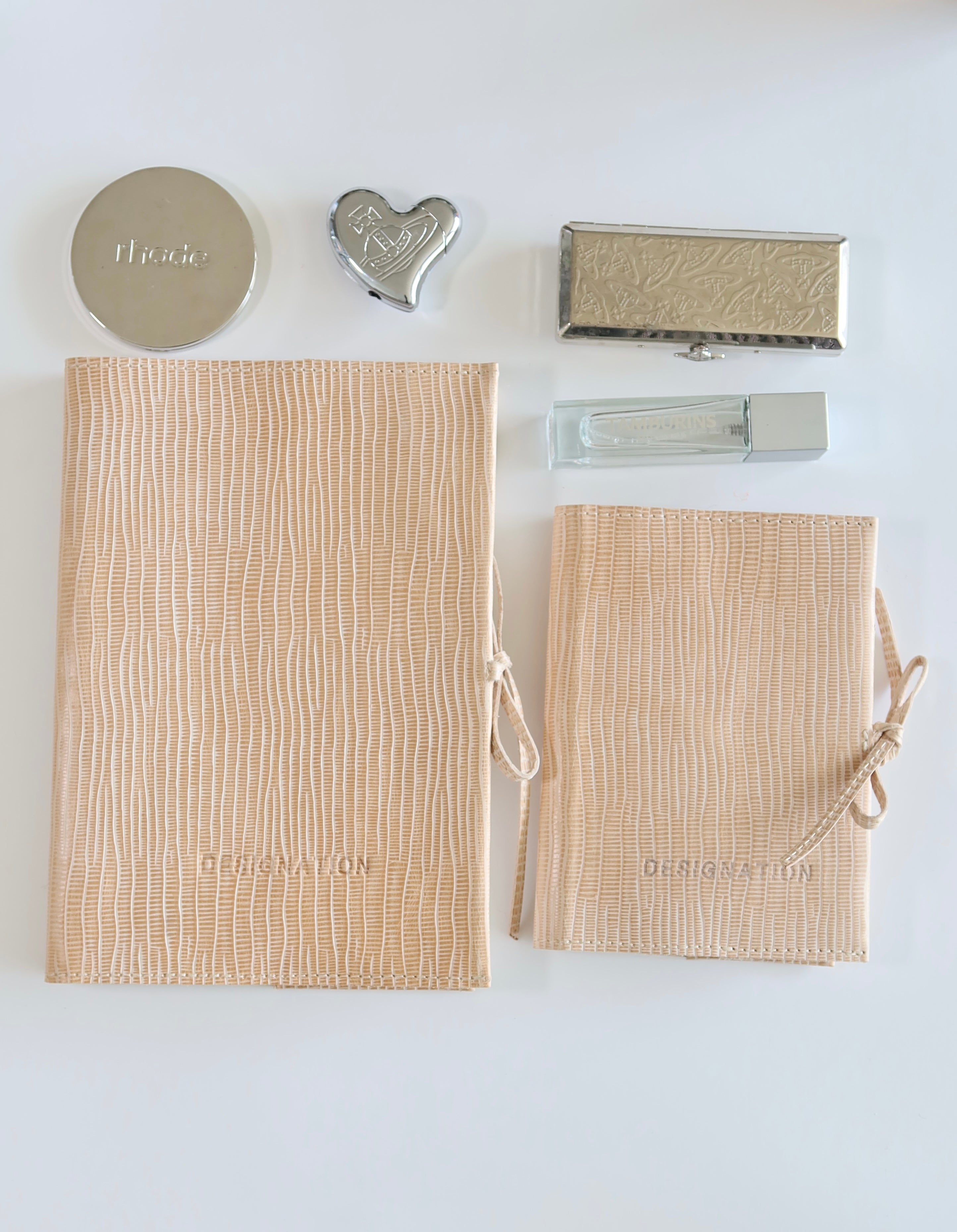 Produced using carefully selected deadstock leathers, every cover is inherently unique, with natural variations in texture and tone. Available in A5 and A6 sizes, each piece features two leather strings for secure closure and will develop a distinctive patina over time.
